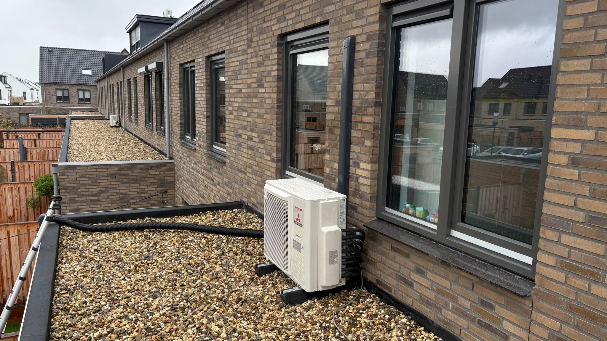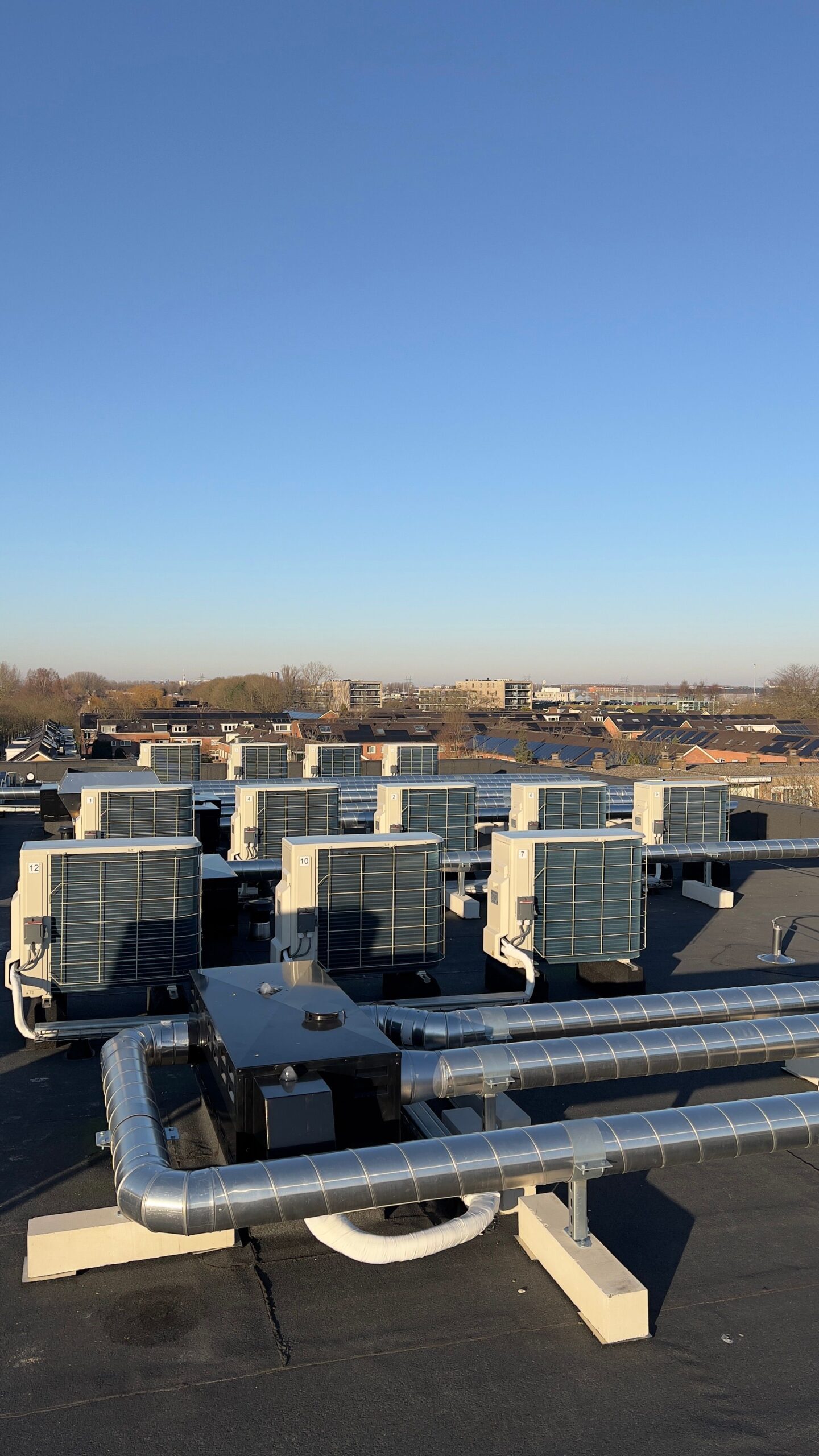 Leidingwerk onder dakpannen na